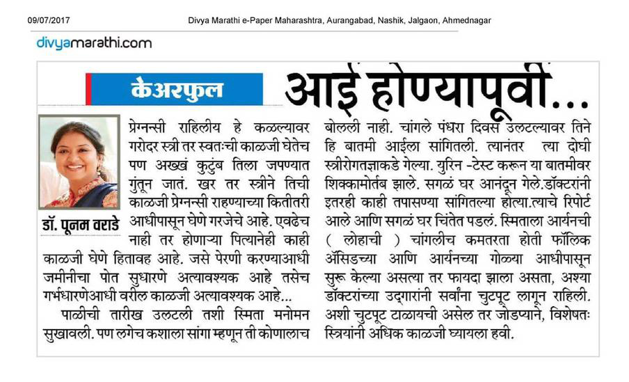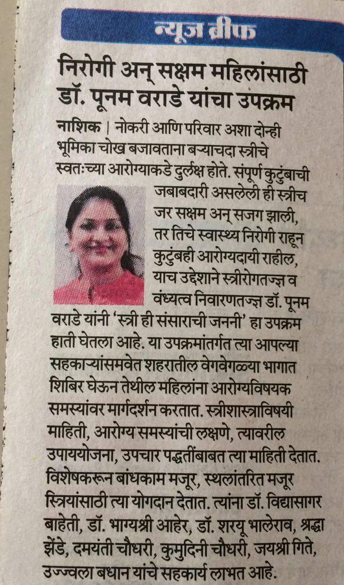 is a 50 bedded NABH (entry-level) & QCI accredited hospital with state-of-the-art-infrastructure and a team of highly trained specialists and professionals in Nashik, Maharashtra. It is our immense pleasure to share successful completion of one year of services by Dr. Poonam Varade.