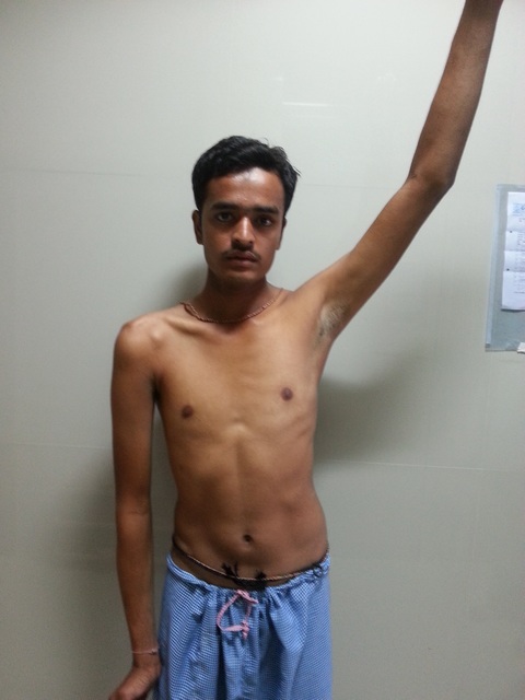 The 24 yrs young boy, had weakness of Rt upper limb. Due to Road traffic accident. This condition is called Brachial plexus injury. in which patients upper limb, is weak due to injury to Brachial plexus. which is located in between, the shoulder and neck of the patient.