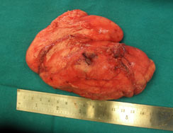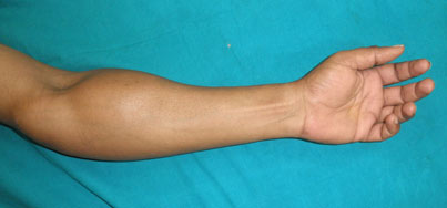 45-year male patient had to swell of Rt forearm since 10 to 12 years. The swelling was gradually increasing in size to attain present huge swelling of the forearm.